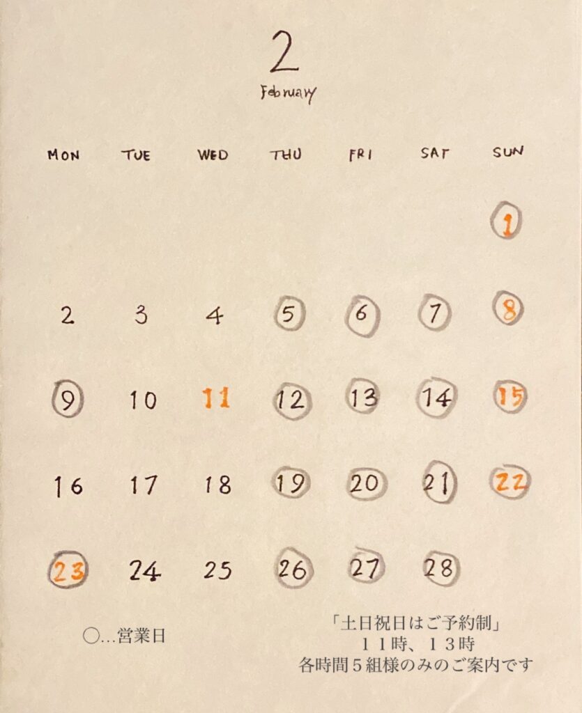 2月営業予定
